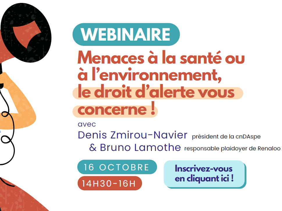 A vos agendas : 16 octobre 14h30 Webinaire « Menaces à la santé ou à l’environnement, le droit d’alerte vous concerne ! »